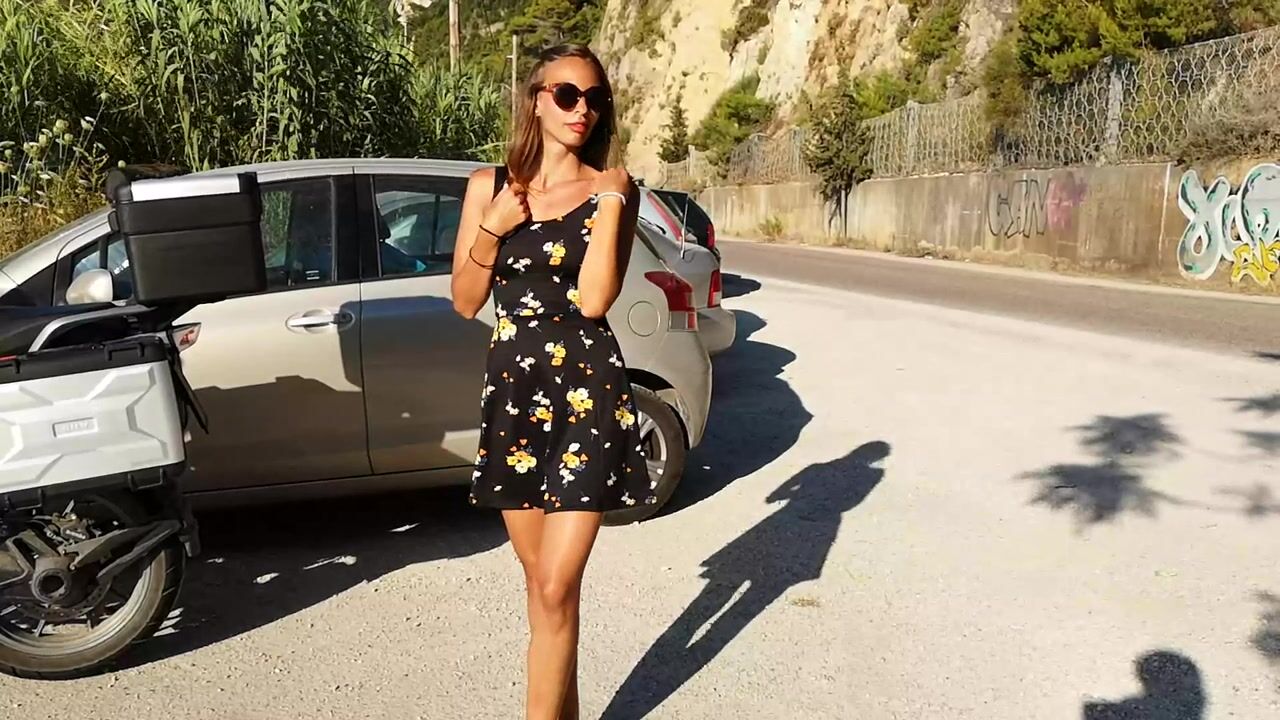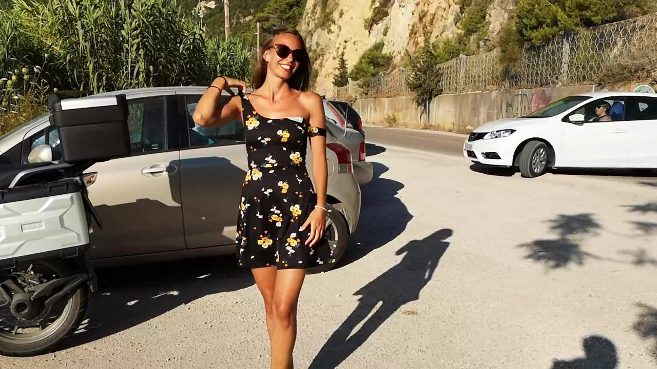 Amazing babe public flashing cute tits and buttplug