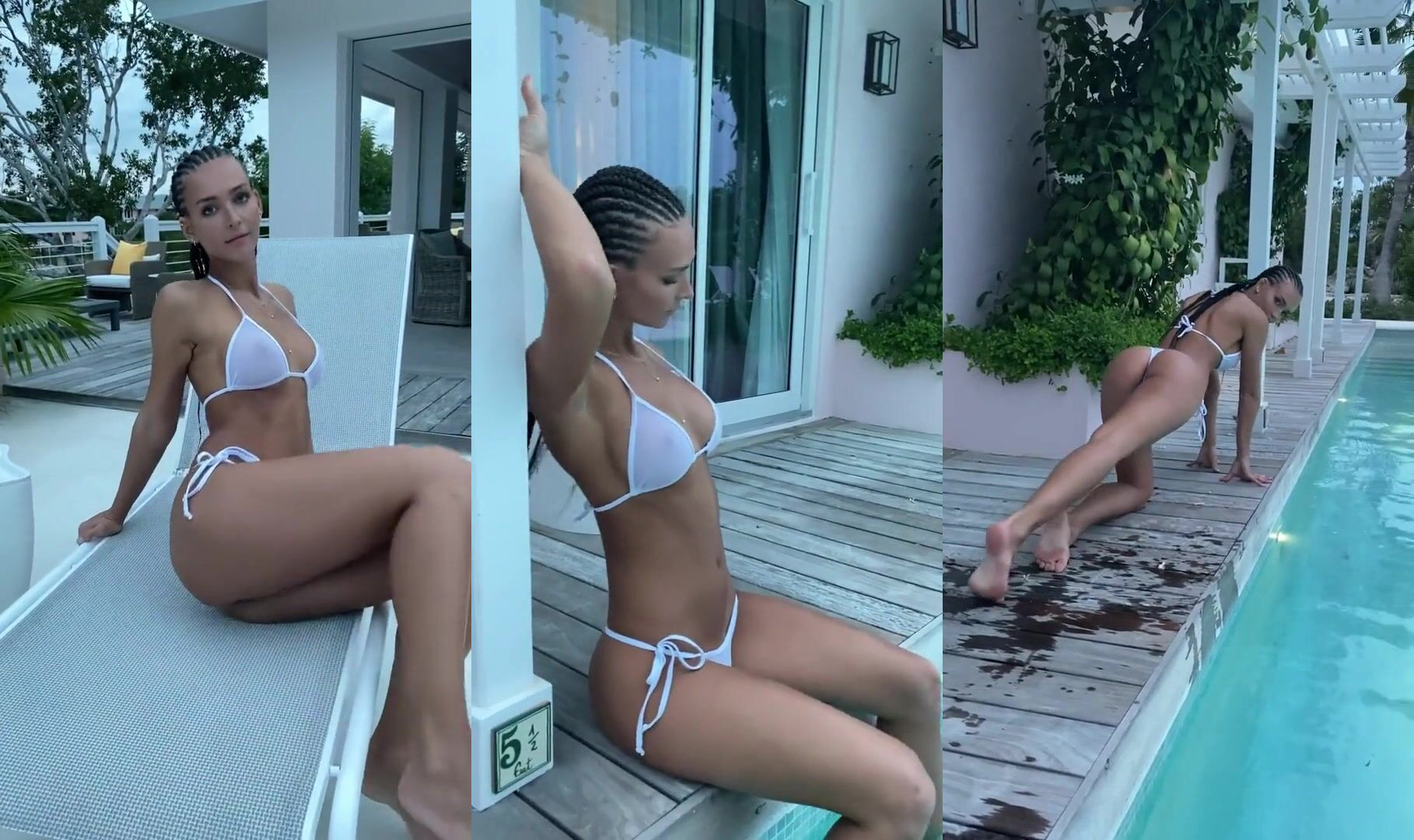 Rachel Cook teases in a sexy white bikini by the poolside, showing off her fit body and curves in this seductive video.