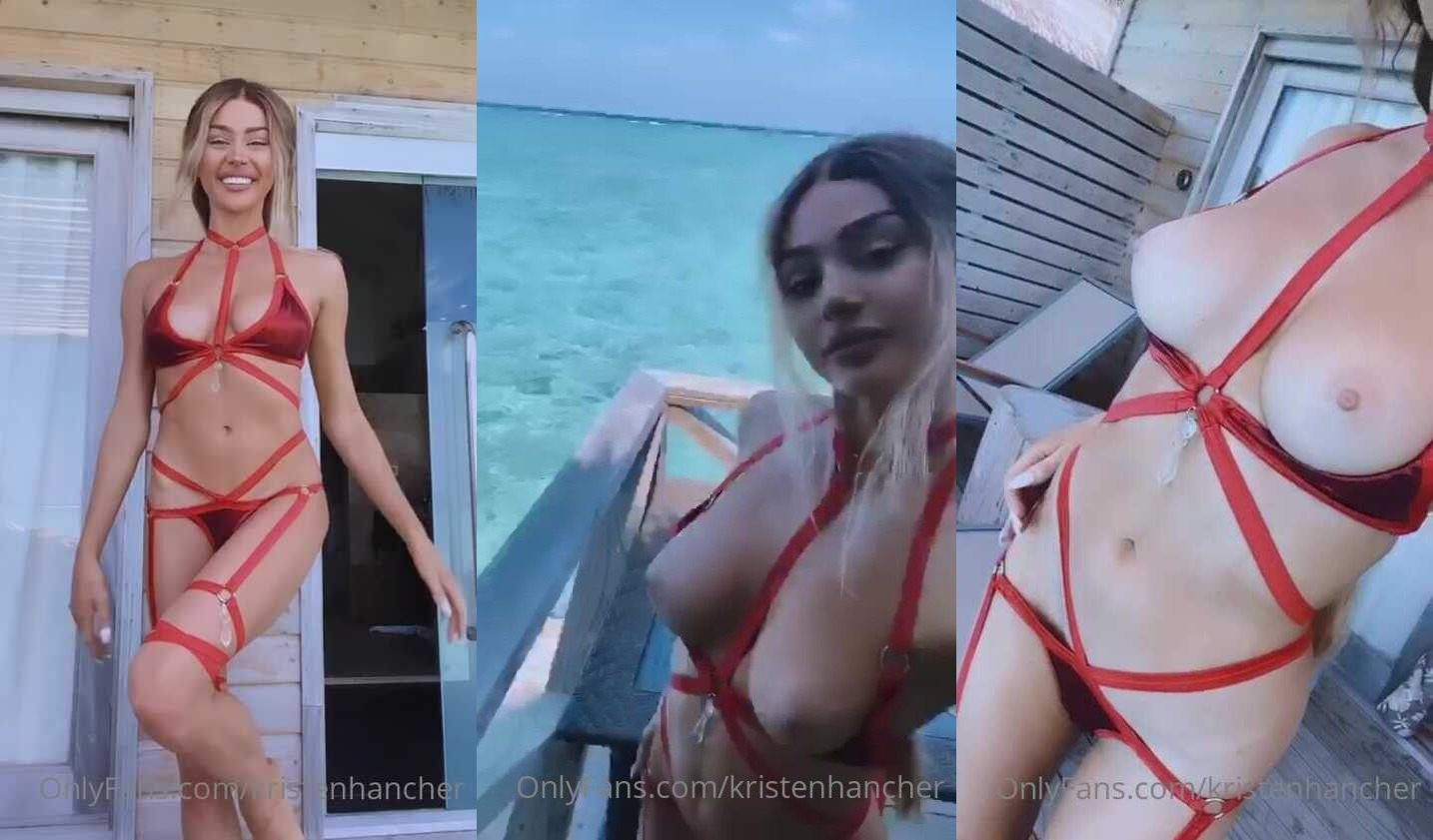 Kristen Hancher Teases in Red Strappy Bikini Showing Off Curves in Outdoor Video