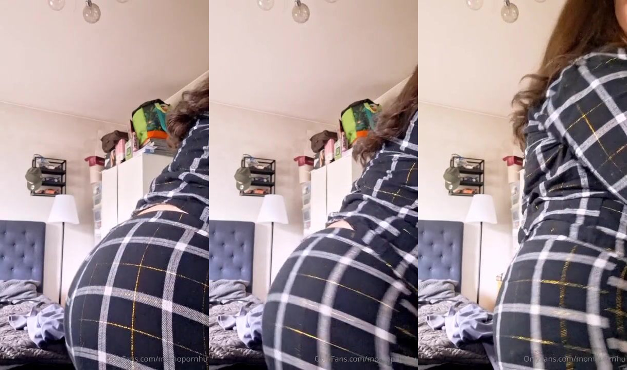 Curvy Goddess Momopornhu shows off her thick thighs and juicy ass in a playful twerking tease wearing checkered pajamas.