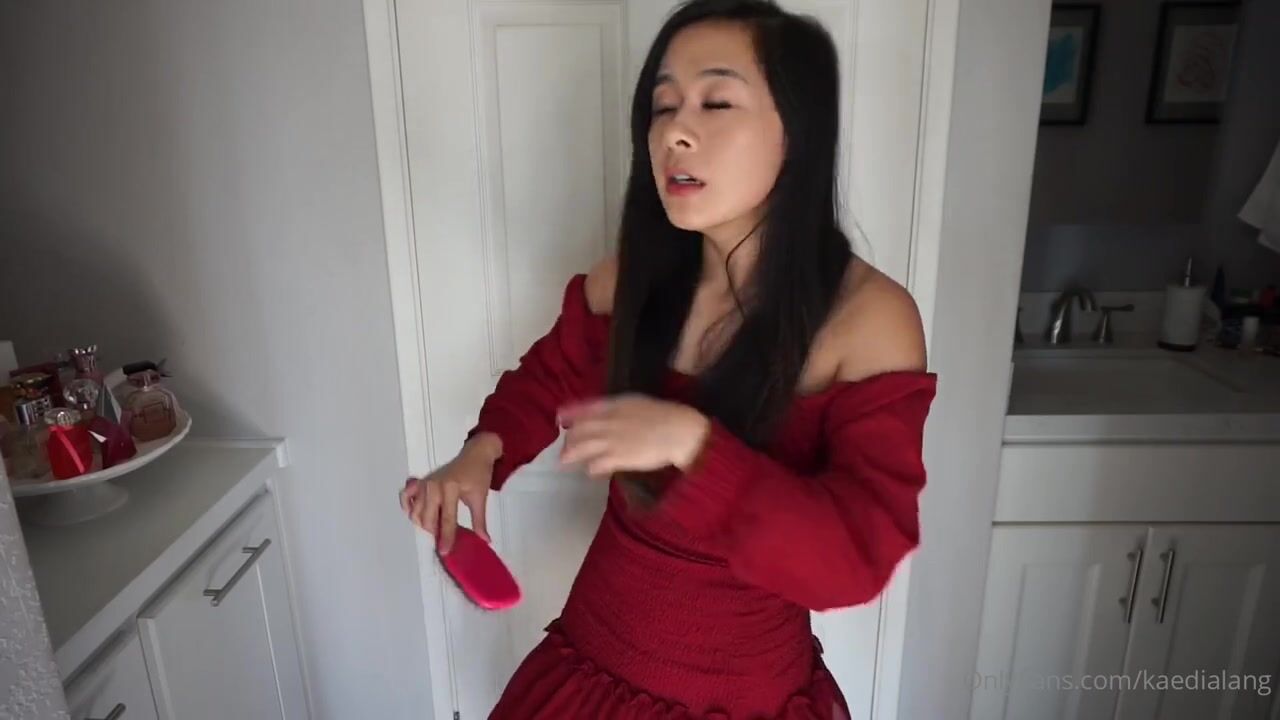 KaediaLang gets naughty in a red dress teasing with her pink vibrator in this OnlyFans video