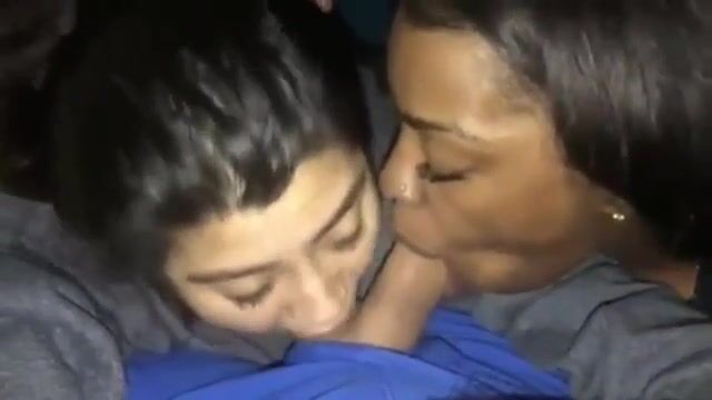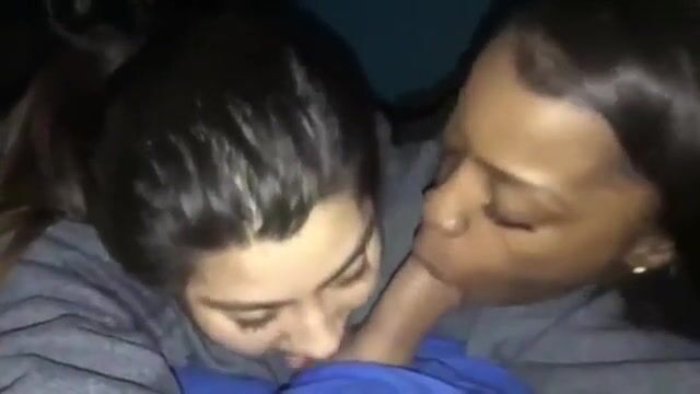 Black girl and her latina friend suck dick together