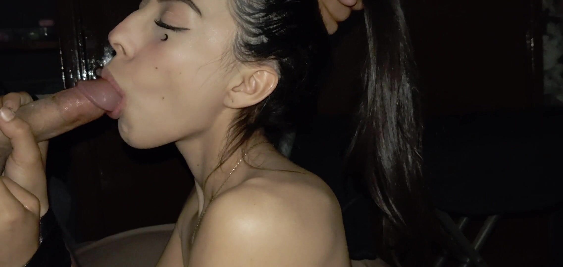 Amateur brunette sucking cock and having porn on the chair with her hands tied
