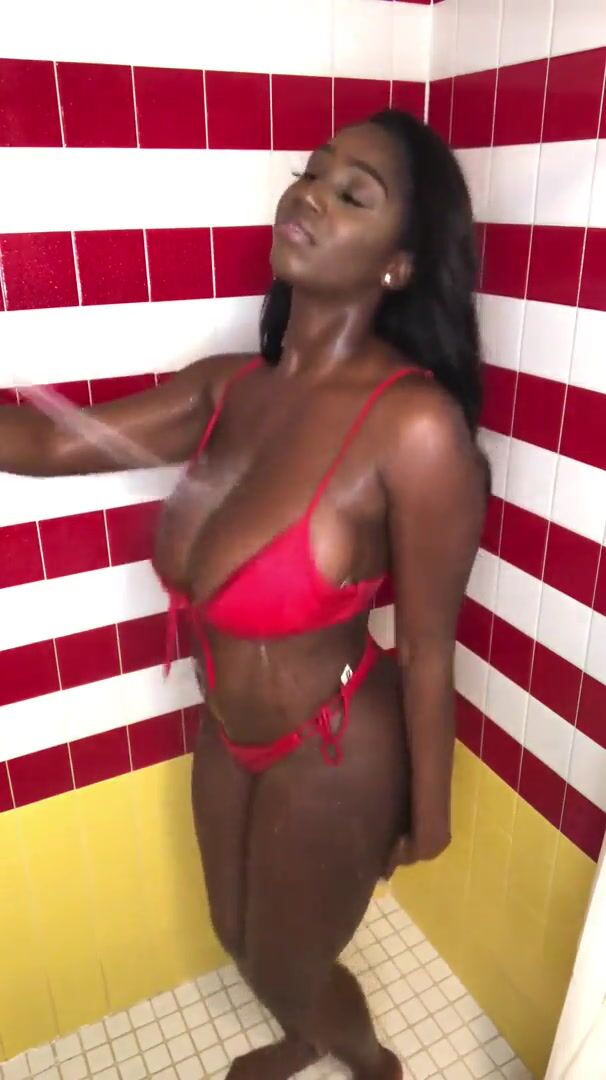 Watch Ellie Mae Naughty Ebony Showering While Wearing Bikini Video Seen on viralxxxporn.com.