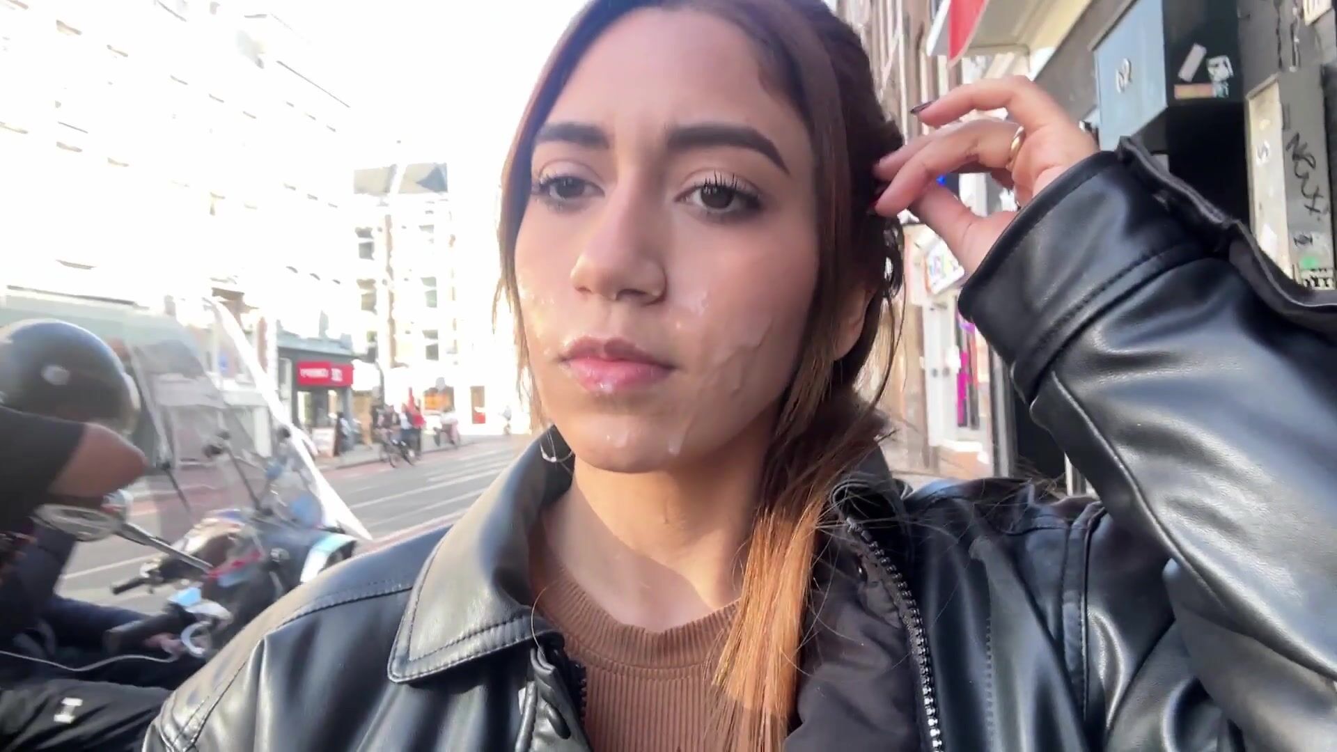 Artemis Carmona Walking Outside With Cum Facial Video