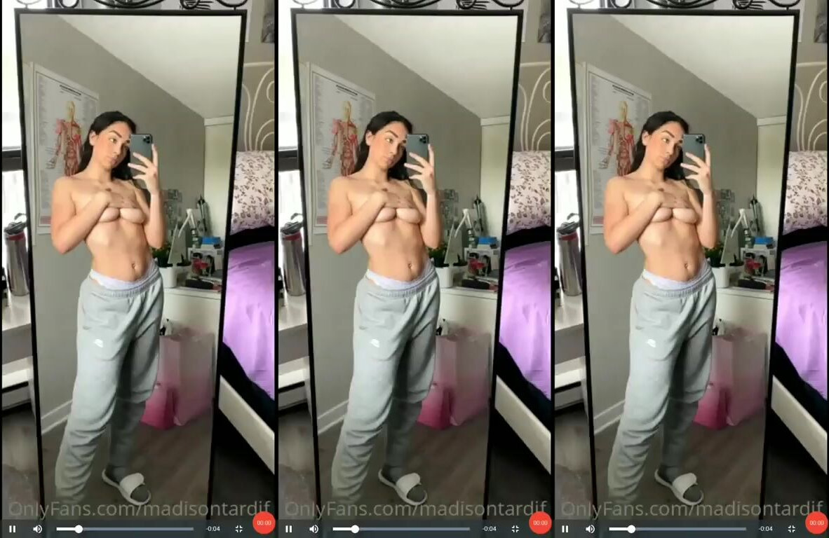 Check out @madisontardif teasing with her big tits out in this steamy OnlyFans video, wearing comfy sweats while flaunting her assets in front of the mirror.