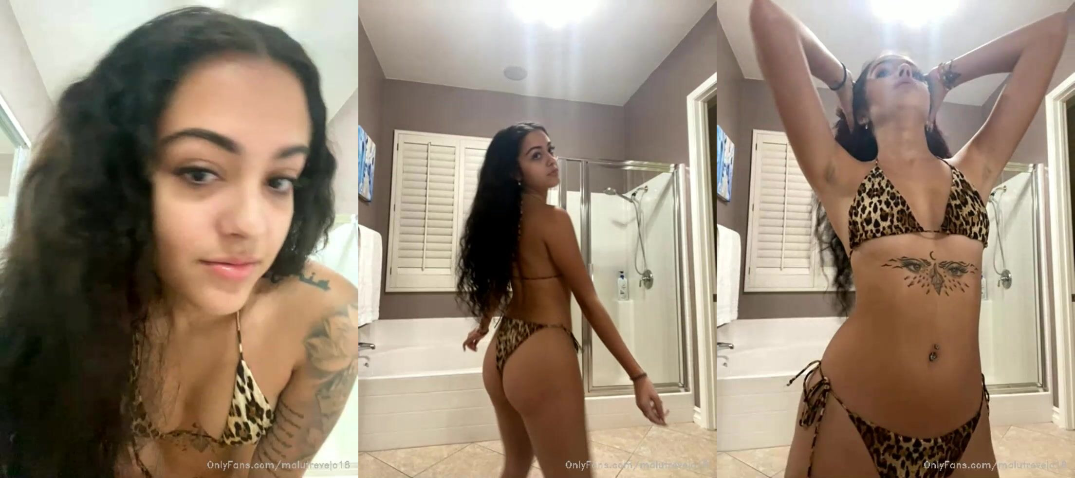 Malu Trevejo show off her curves in a leopard bikini in this seductive OnlyFans live video.