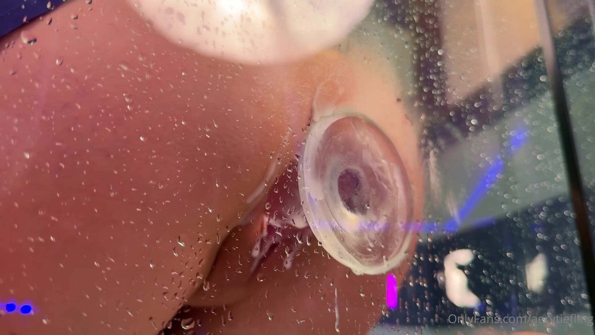 Exclusive OnlyFans video of AeryTiefling masturbating with a dildo in the shower.