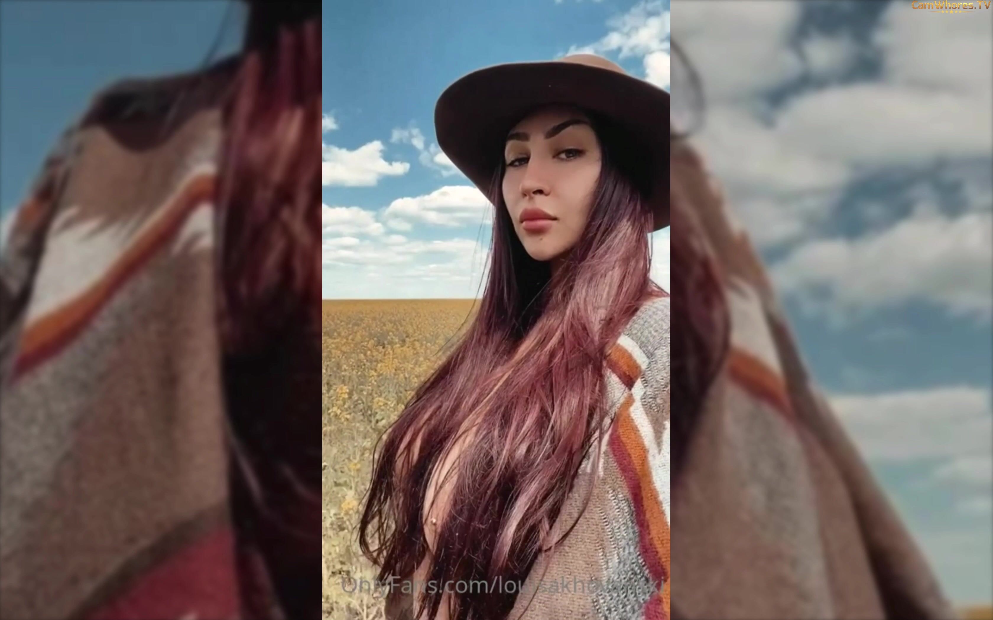 Watch Louisa Khovanski’s outdoor video as she teases her perfect tits under the open sky, giving a seductive show that's hard to resist.
