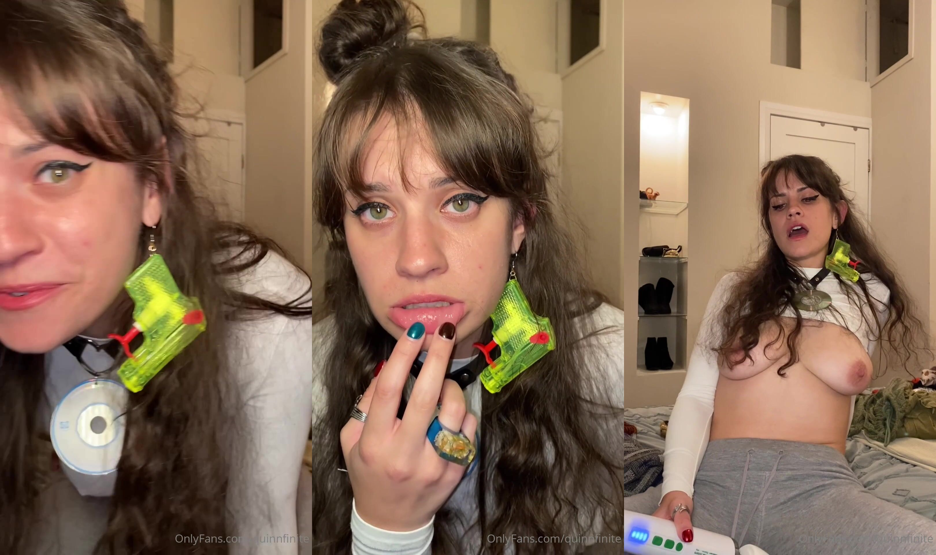 Quinn Finite turns up the heat in this steamy OnlyFans video as she teases with a toy in her mouth while boldly exposing her breasts for the camera.