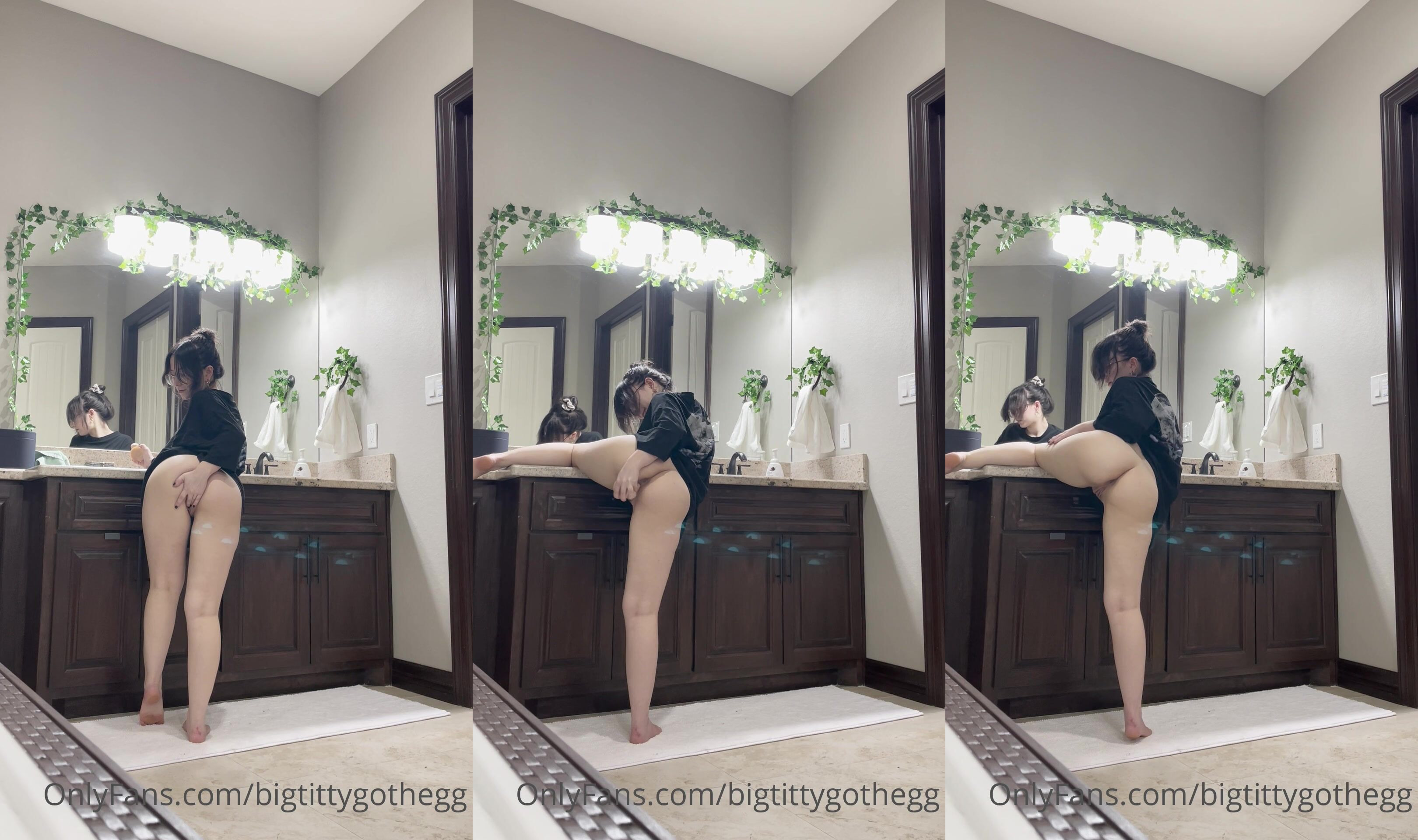 BigTittyGotHegg strips naked in her bathroom, playing with her thick thighs and big tits in this steamy OnlyFans video.