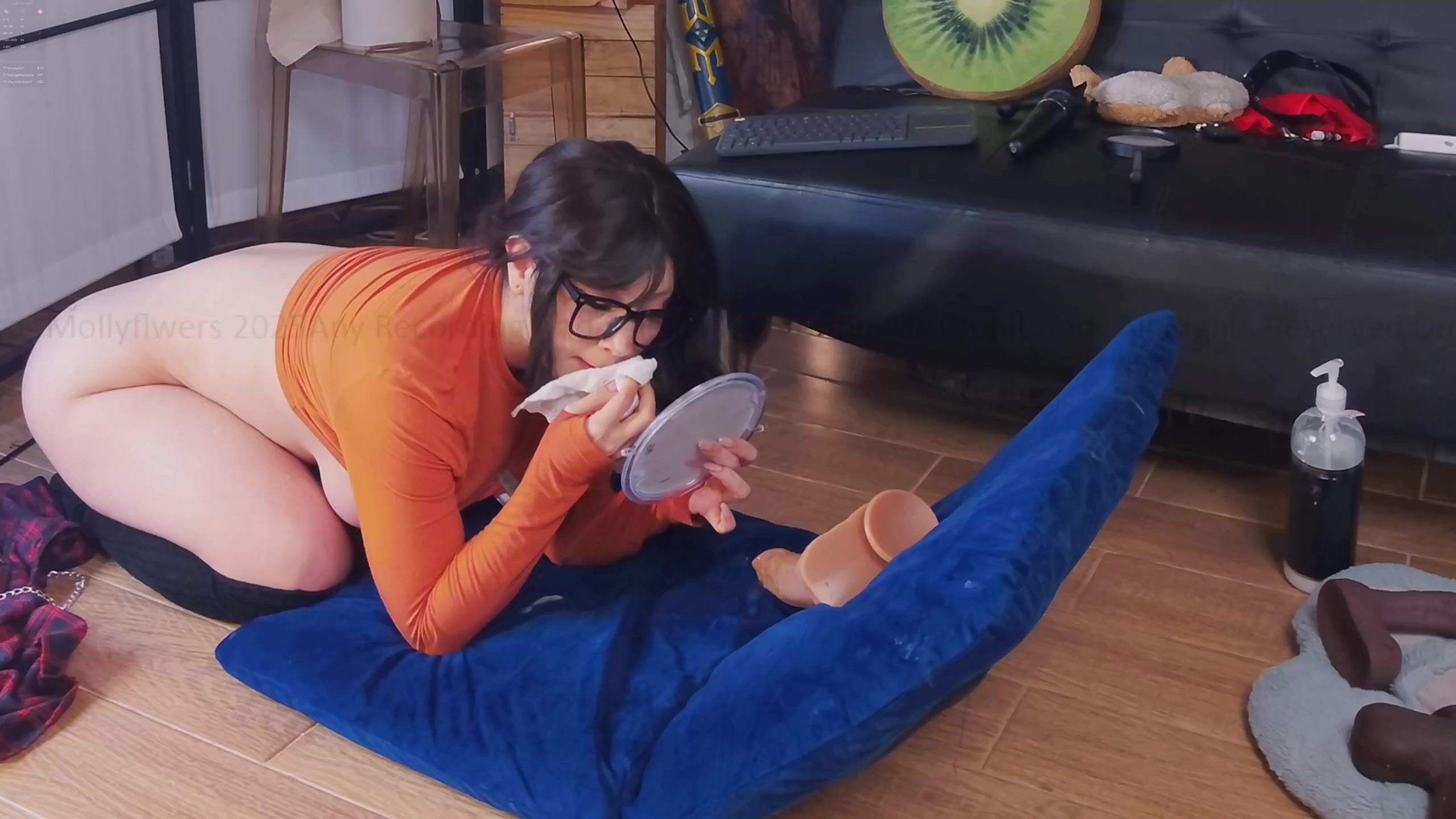 Curvy goddess Mollyflwers puts on a naughty show in orange lingerie as she masturbate with her dildo in this irresistible video.