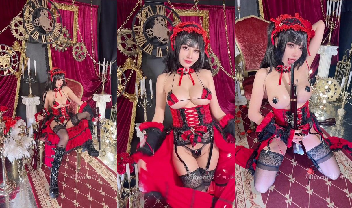 Byoru Cosplays Kurumi Tokisaki in Steamy Red Lingerie Video
