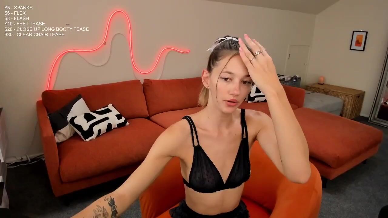 Petite Cutie Miss Alice in naughty lingerie show off her feet, booty and clear chair in this sexy live stream video