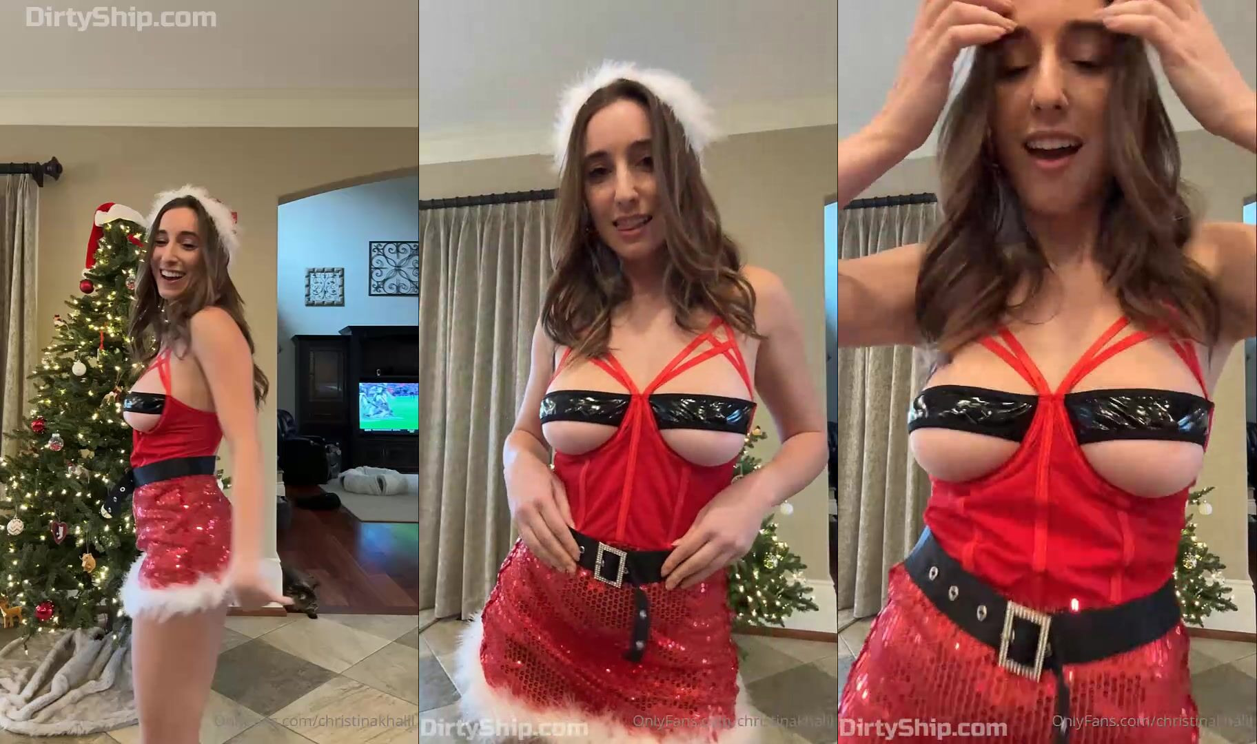ChristinaKhalil rocks a sexy Santa outfit in this teasing video, showing off her big boobs and playful vibe, exclusively from OnlyFans.