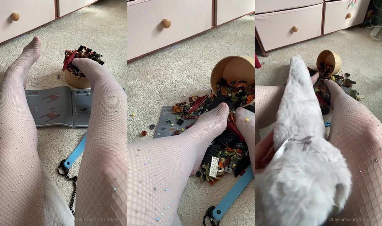 A playful feet tease video with Littlelee69 from OnlyFans as she plays with Legos in pink stockings