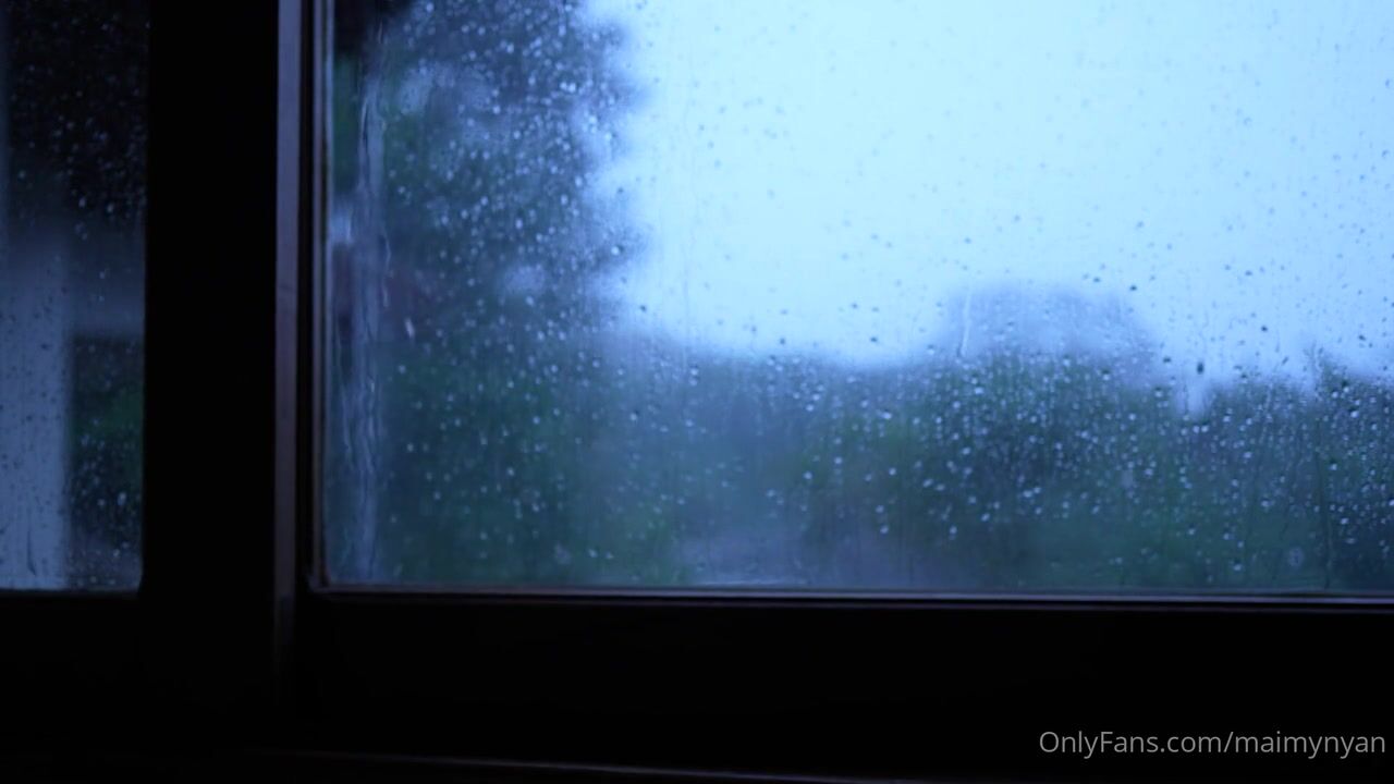 Maimy whispers and moans in a wet and wild ASMR ride fucking her pussy in a dripping wet rainy day video