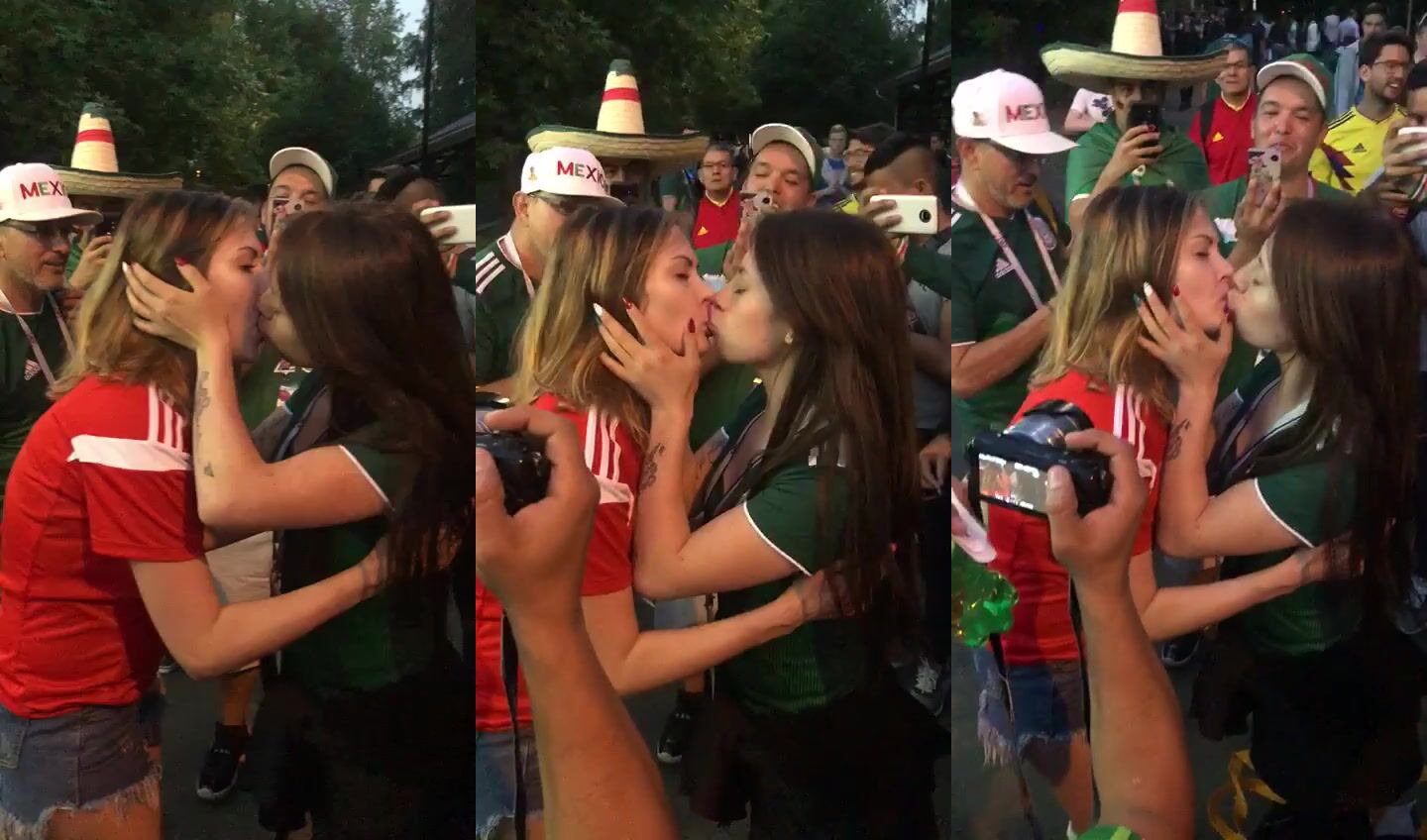 Torcedoras get naughty in steamy World Cup 2018 kissing lesbian video, teasing each other in a lustful public makeout session, perfect for any soccer fan with a porn craving