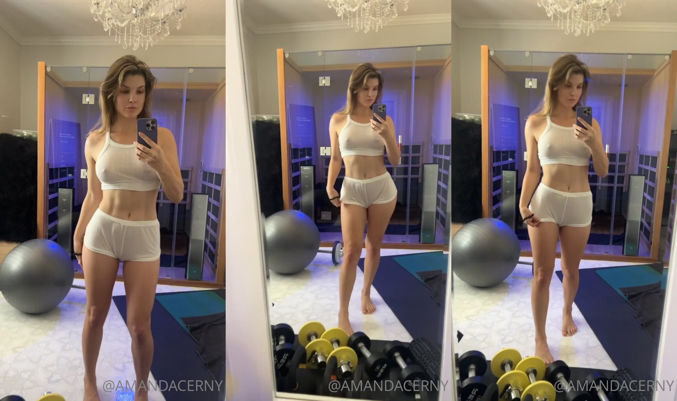 Amanda Cerny suffers a nip slip while teasing in a sheer outfit during a leaked OnlyFans video - This title maintains the important keywords from the original.