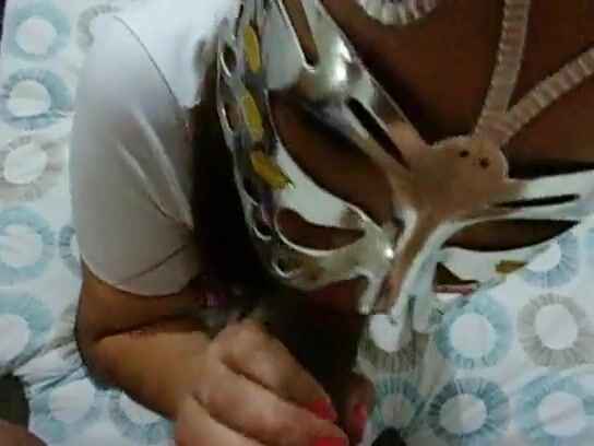 Casada Gostosa Gagging on Cock While Masked in Fetish Video